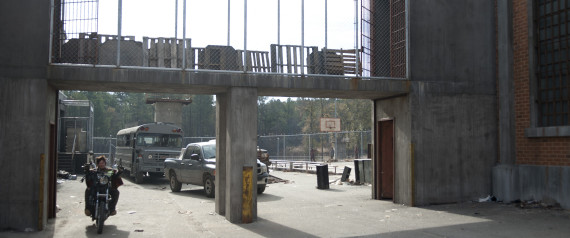 In Grantville, the town's ruins were featured prominently last season. Bodies of walkers slain on the show were buried in a vacant lot beneath the brick archway remaining from a cotton mill building. Gunshots were fired from a nearby rooftop.